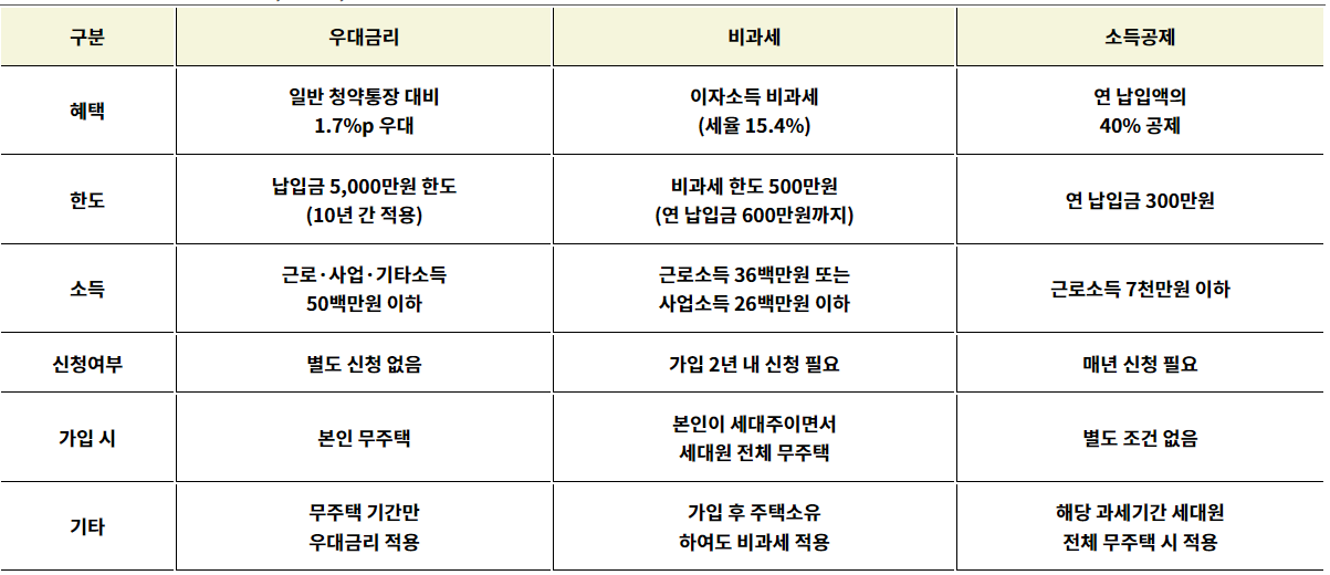 청약저축 종류별 비교