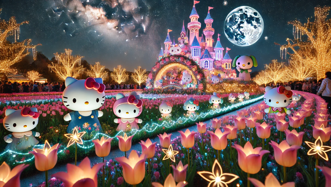 튤립이 가득한 포시즌스 가든에서 펼쳐지는 특별한 산리오 캐릭터 퍼레이드!